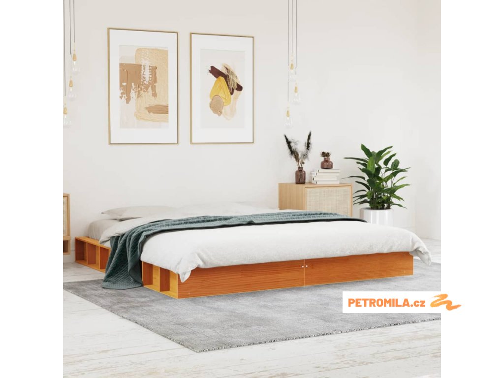 Postel bez matrace voskově hnědá 200 x 200 cm masivní borovice