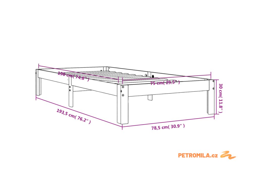 Postel bez matrace voskově hnědá 75 x 190 cm masivní borovice