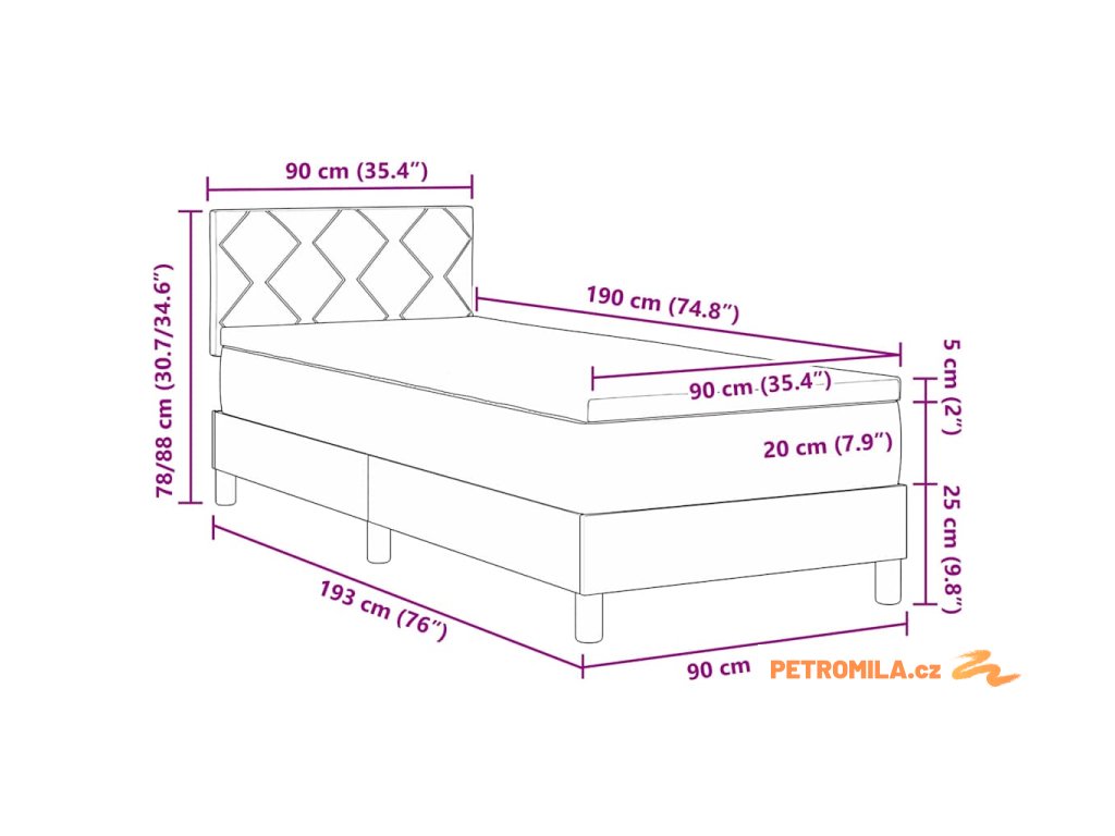 - Velikost matrace: Krátké jednolůžko (90 cm x 190 cm nebo 35" x 75")