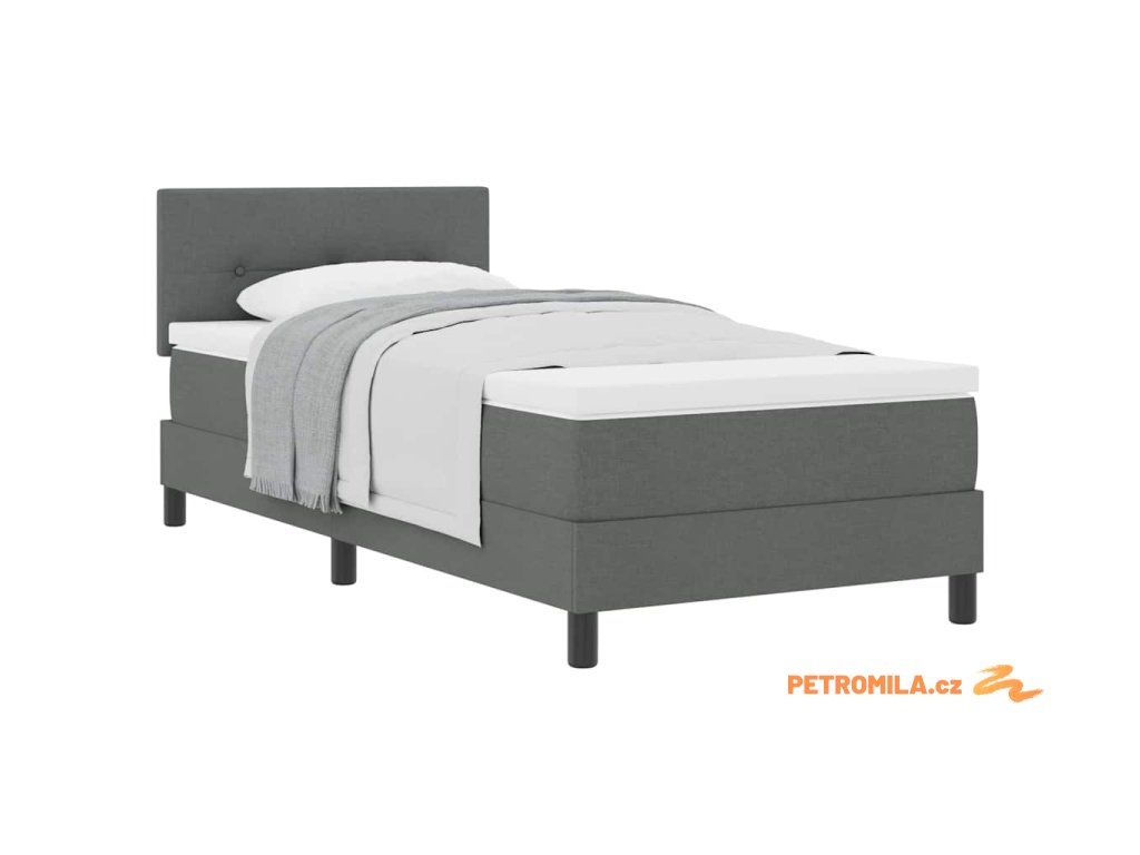 Postel boxspring s matrací s čelo Tmavě šedá 90 x 200 cm textil