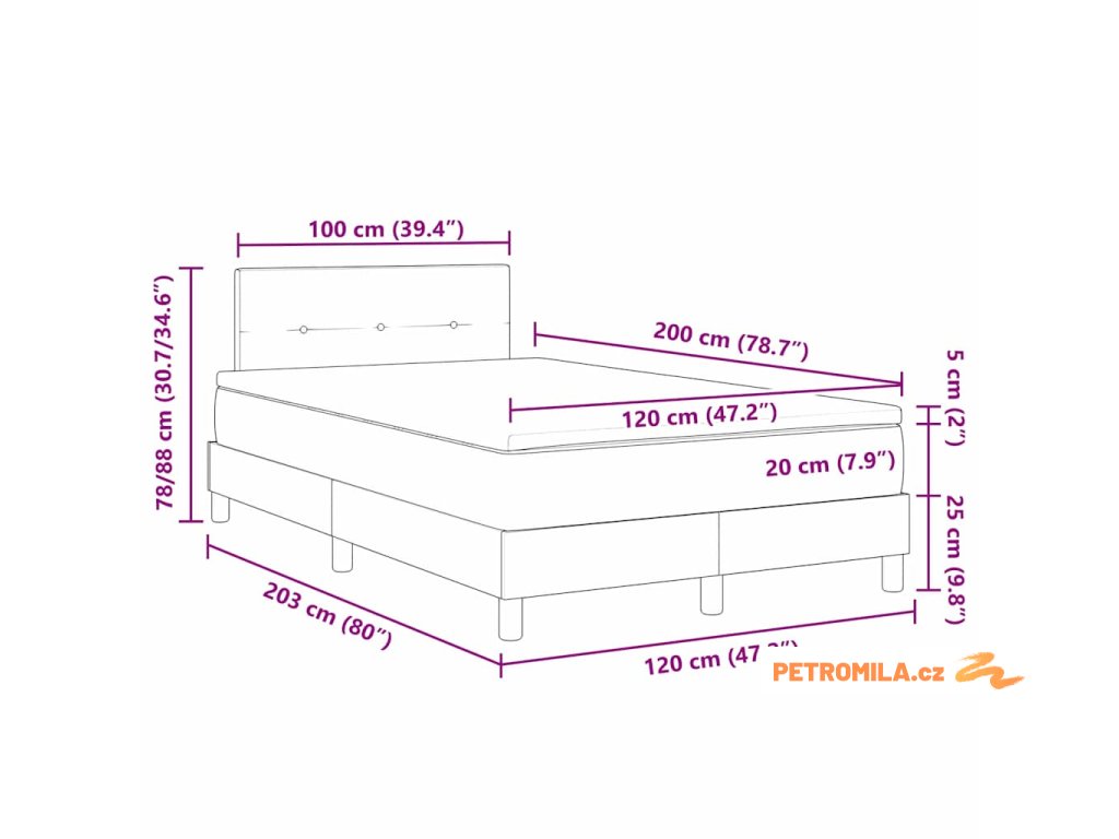 - Velikost matrace: Malá dvojpostel (120 cm x 200 cm nebo 47" x 79")