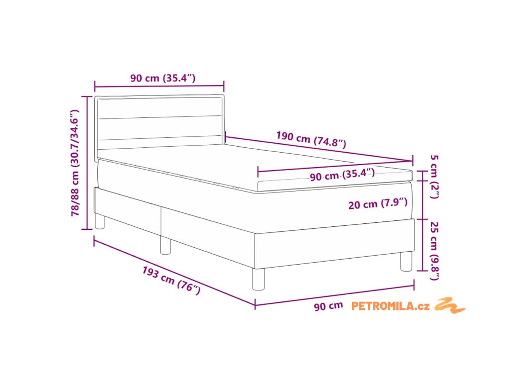 - Velikost matrace: Krátké jednolůžko (90 cm x 190 cm nebo 35" x 75")
