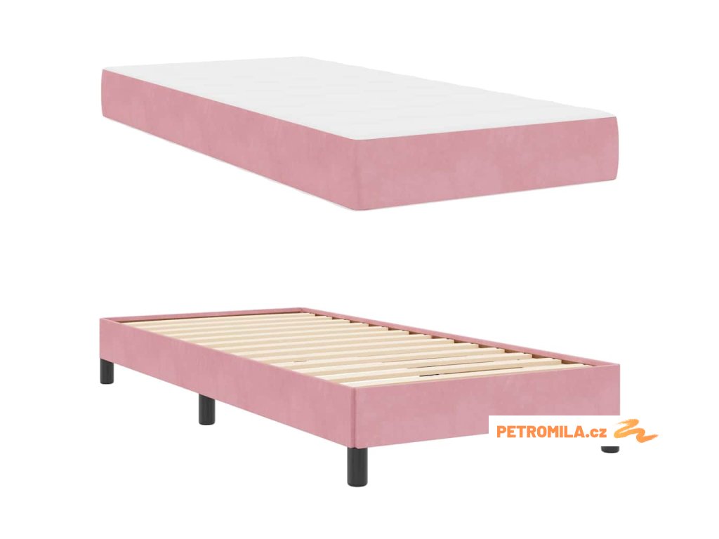 Postel boxspring s matrací s matrací Růžová 100 x 200 cm samet