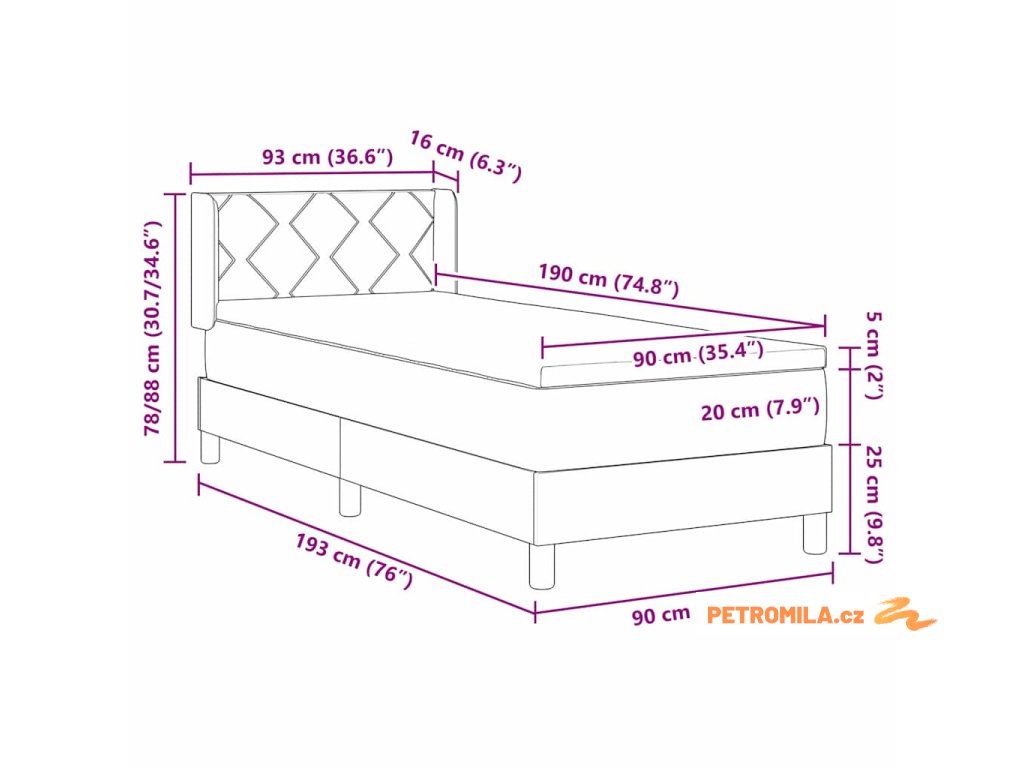 - Velikost matrace: Krátké jednolůžko (90 cm x 190 cm nebo 35" x 75")