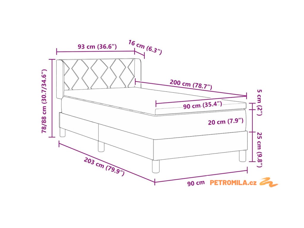 - Velikost matrace: Jednolůžko (90 cm x 200 cm nebo 35" x 79")