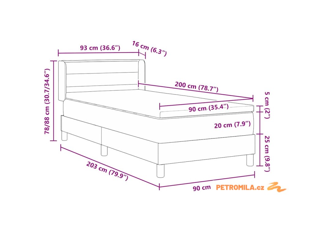 - Velikost matrace: Jednolůžko (90 cm x 200 cm nebo 35" x 79")