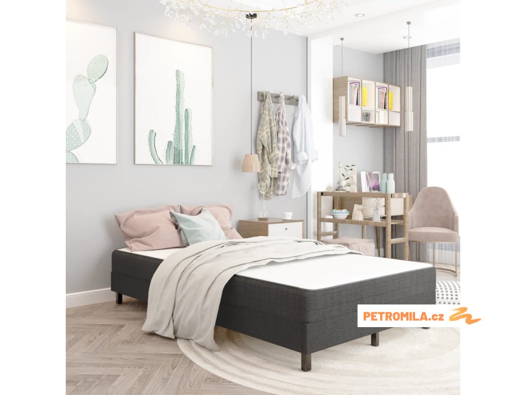 Postelový rám je vyrobený z MDF a kovu, je tedy mimořádné pevný a dlouho vám vydrží. Čalounění z odolné a pevné látky přímo vybízí k ulehnutí a také se snadno čistí. Postel je vhodná pro matrace o rozměrech 120 x 200 cm.