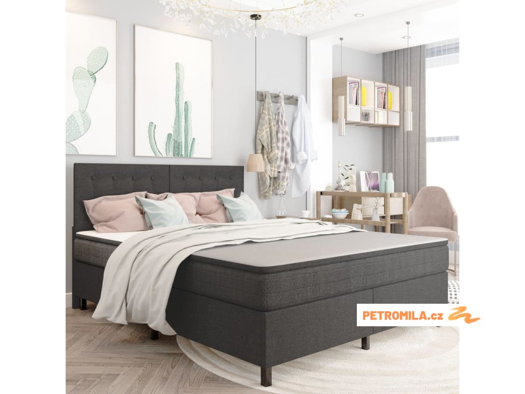 Postel boxspring tmavě šedá textil 160 x 200 cm