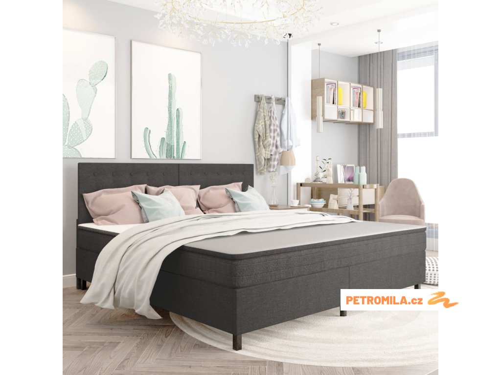 Postel boxspring tmavě šedá textil 200 x 200 cm