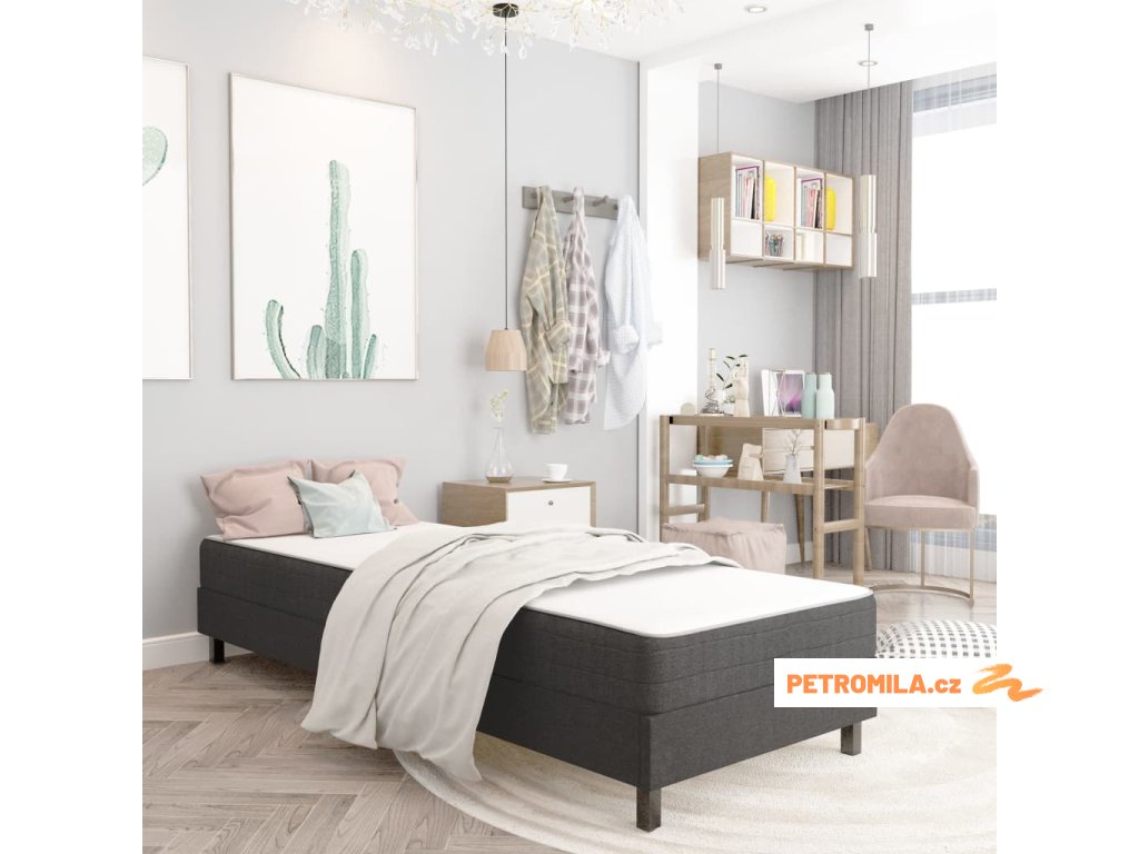 Postel boxspring tmavě šedá textil 80 x 200 cm