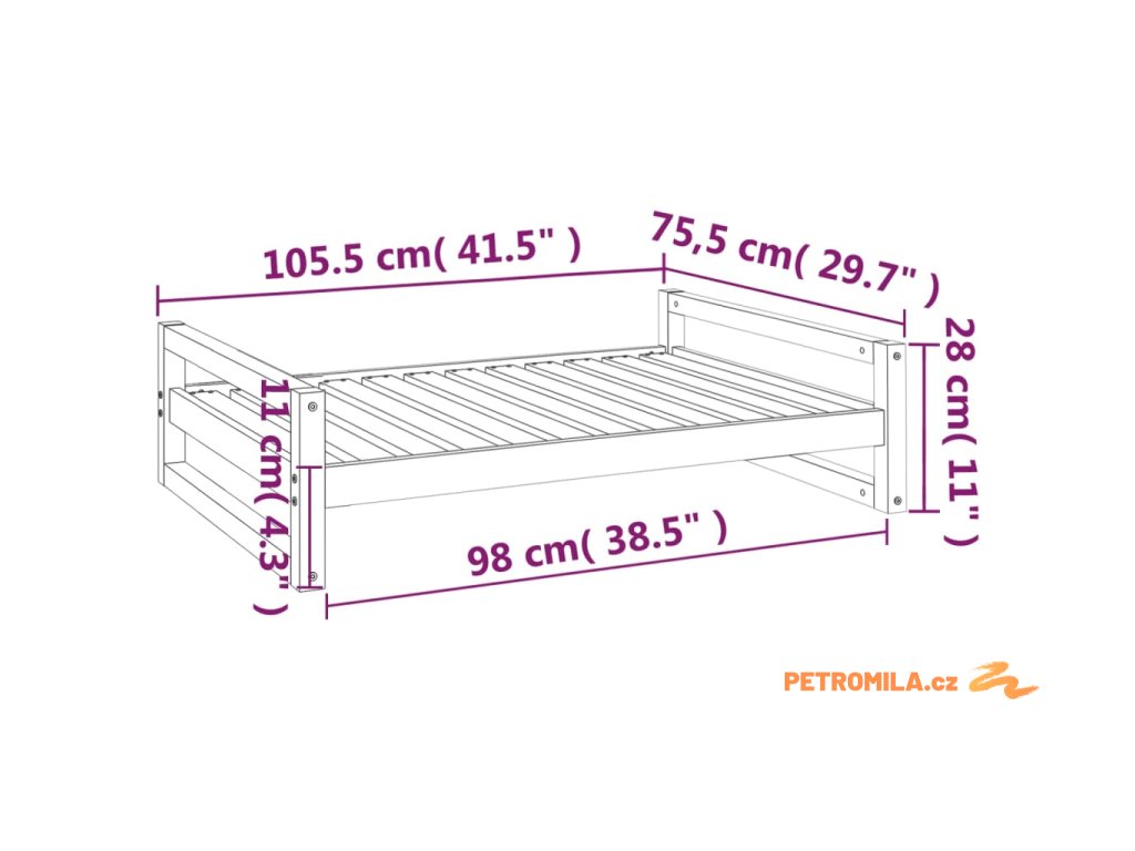 Postel pro psy bílá 105,5 x 75,5 x 28 cm masivní borovice