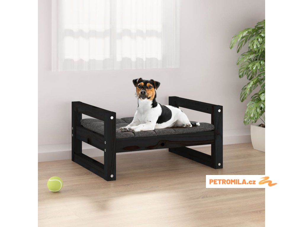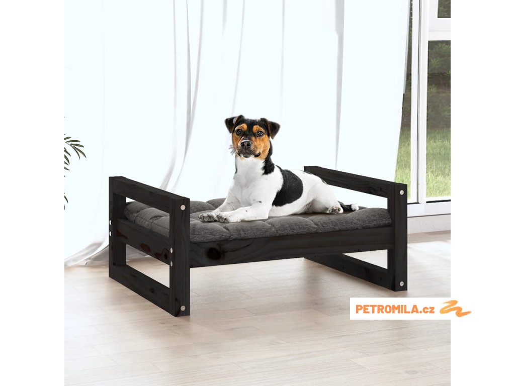 Postel pro psy černá 55,5 x 45,5 x 28 cm masivní borovice