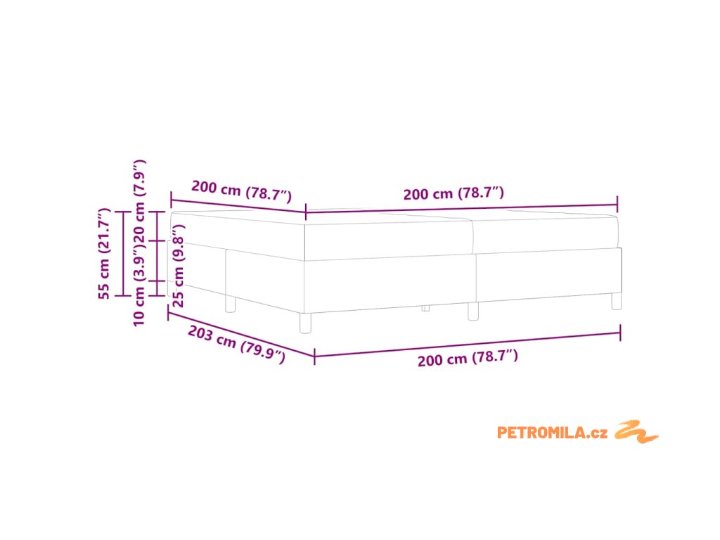 - Velikost matrace: Císařská postel (200 cm x 200 cm nebo 79" x 79")