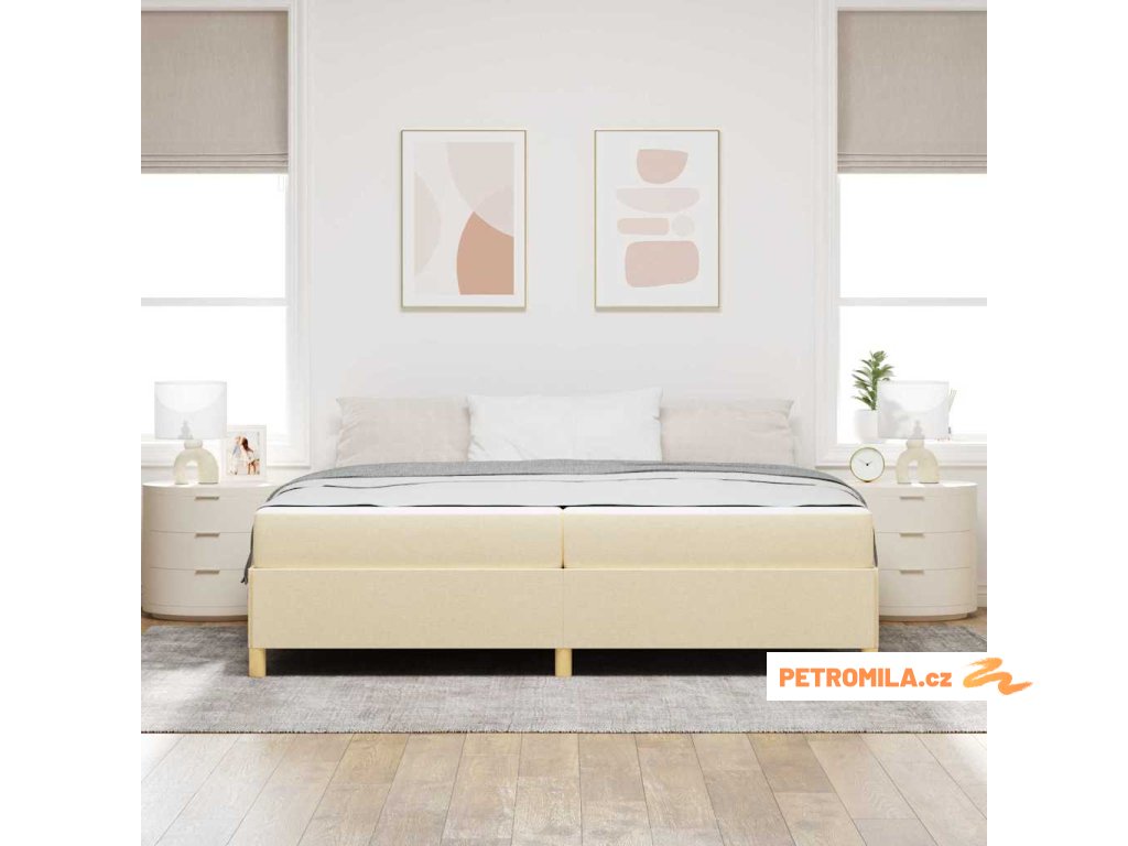 Postel s boxspringem Bílá a krémová 200 x 200 cm textil