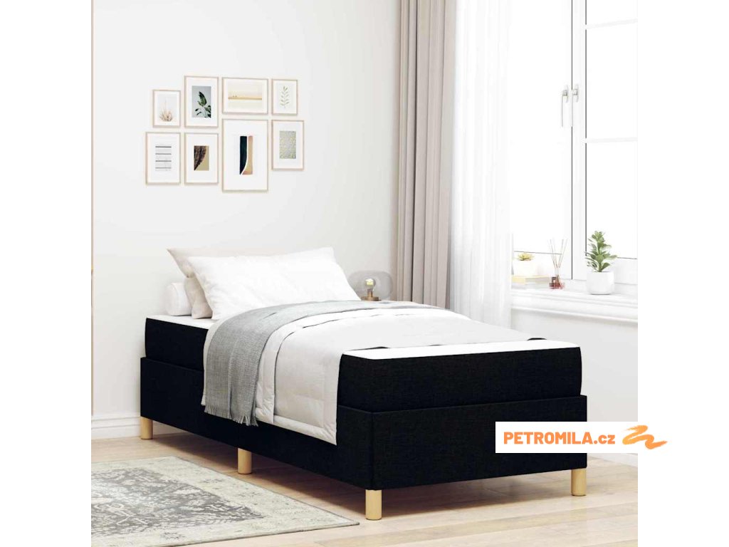 Postel s boxspringem Černá a hnědá a bílá 80 x 200 cm textil