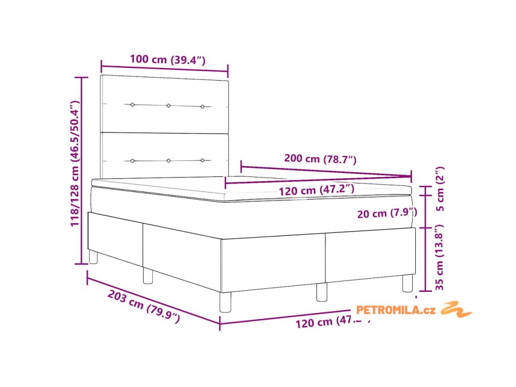- Velikost matrace: Malá dvojpostel (120 cm x 200 cm nebo 47" x 79")