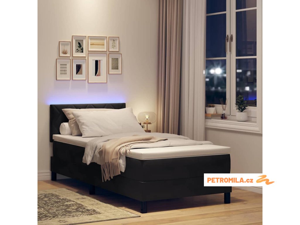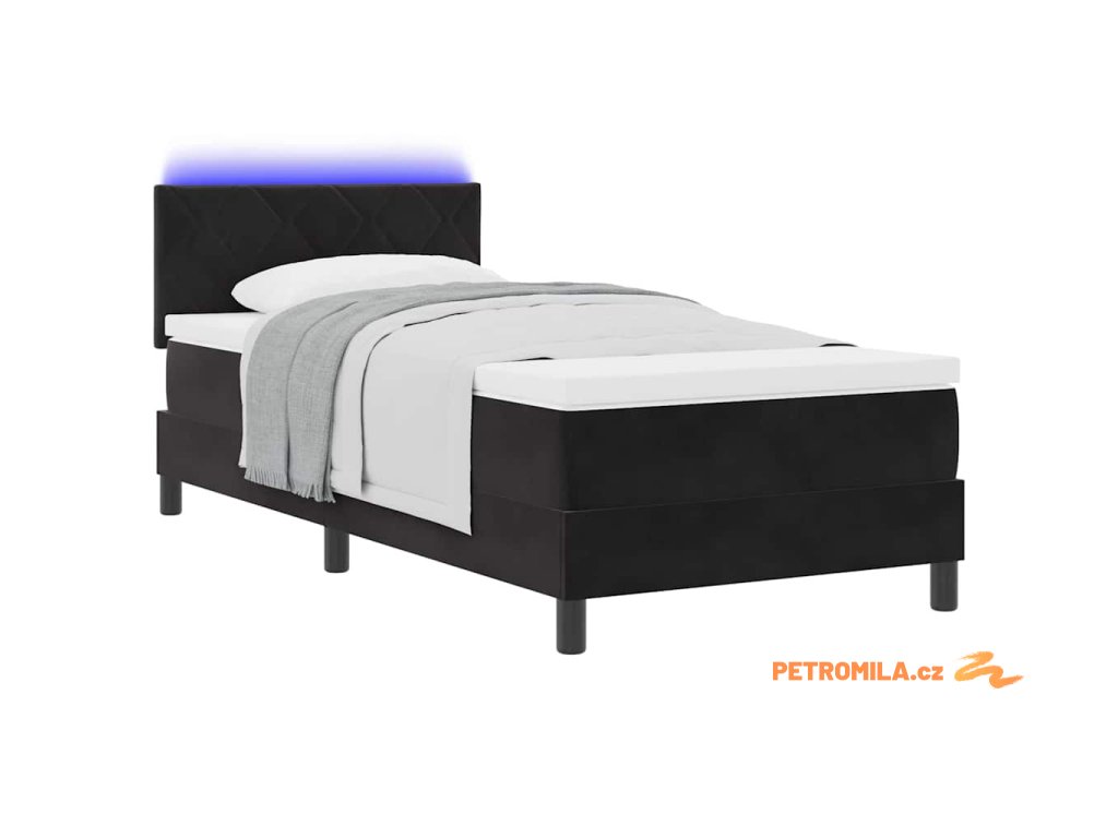 Postel s boxspringem s čelo Černá 90 x 190 cm samet