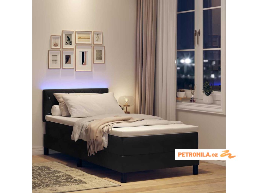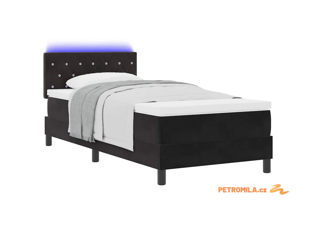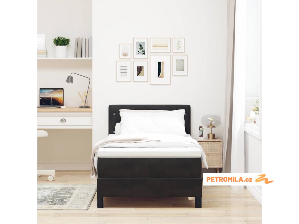 Postel s boxspringem s čelo Černá 90 x 200 cm samet