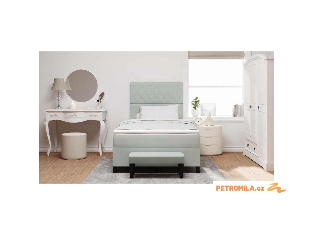Postel s boxspringem s čelo Světle šedá 200 x 120 cm samet