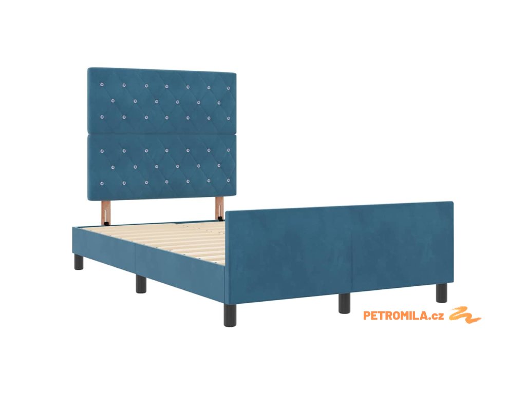 Postel s boxspringem s čelo Tmavě modrá 120 x 200 cm samet