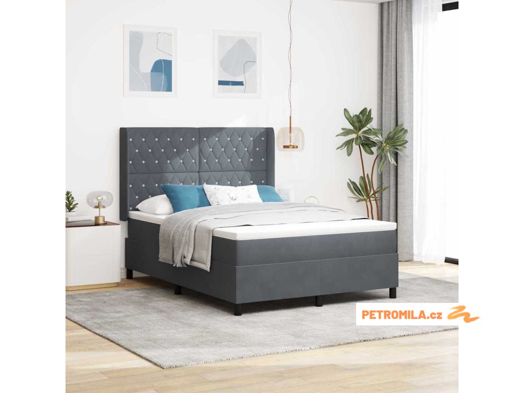 Postel s boxspringem s čelo Tmavě šedá 140 x 190 cm samet