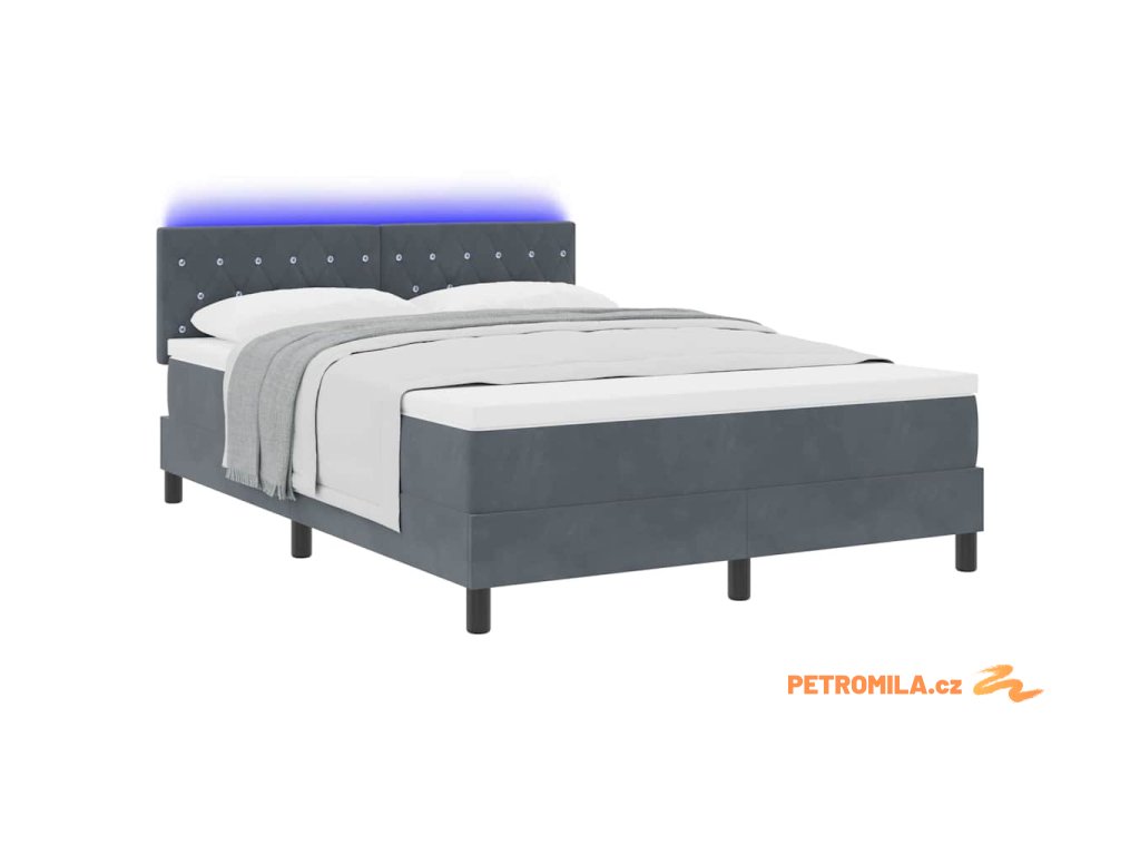 Postel s boxspringem s čelo Tmavě šedá 140 x 200 cm samet