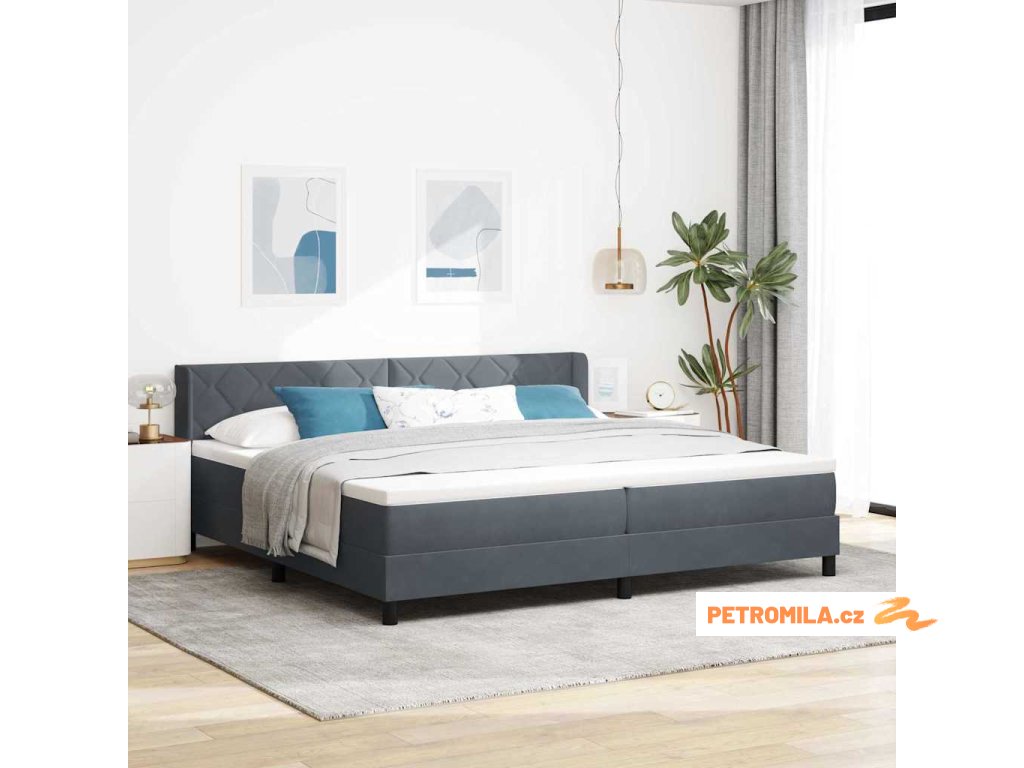 Postel s boxspringem s čelo Tmavě šedá 200 x 200 cm Polyester
