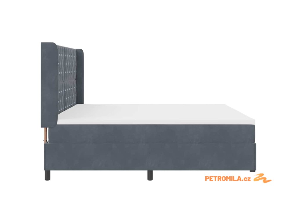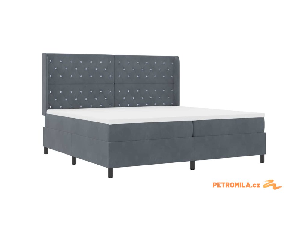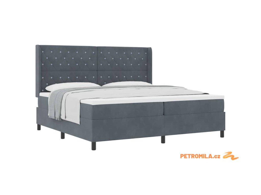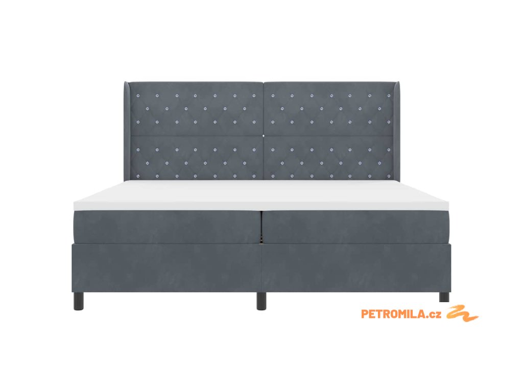 Postel s boxspringem s čelo Tmavě šedá 200 x 200 cm samet