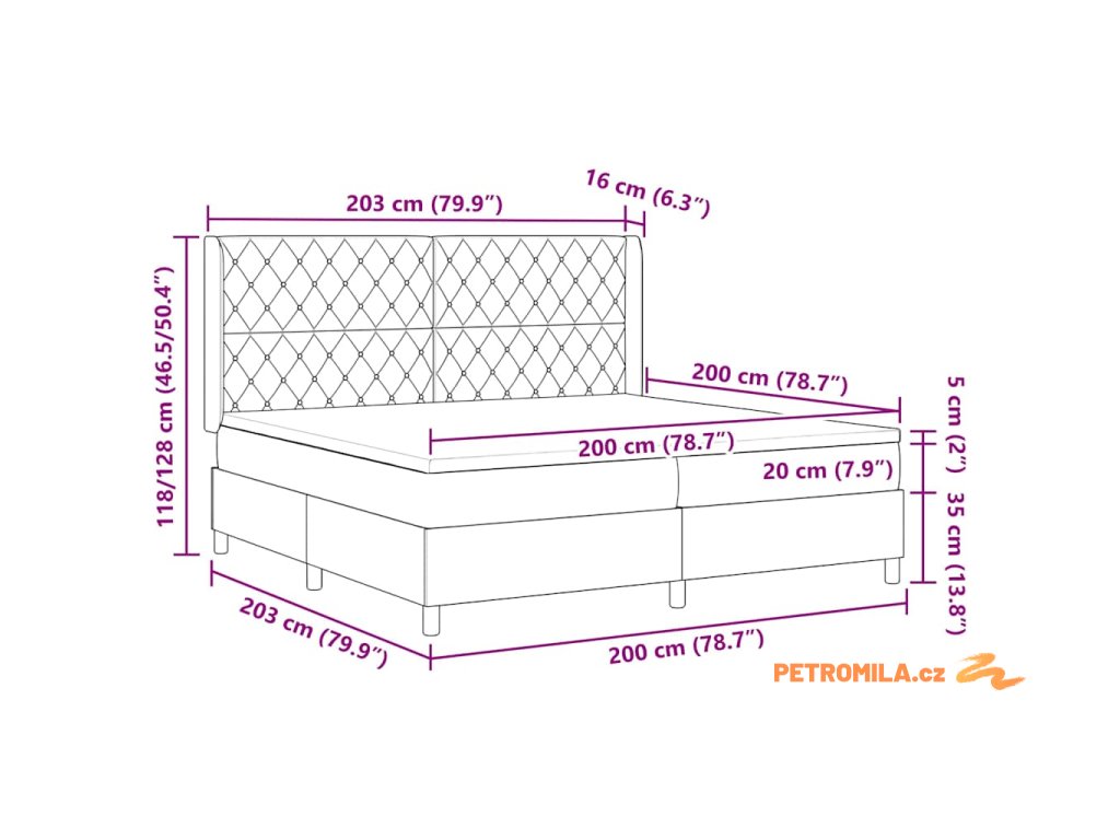 - Císařská postel (200 cm x 200 cm nebo 79" x 79")