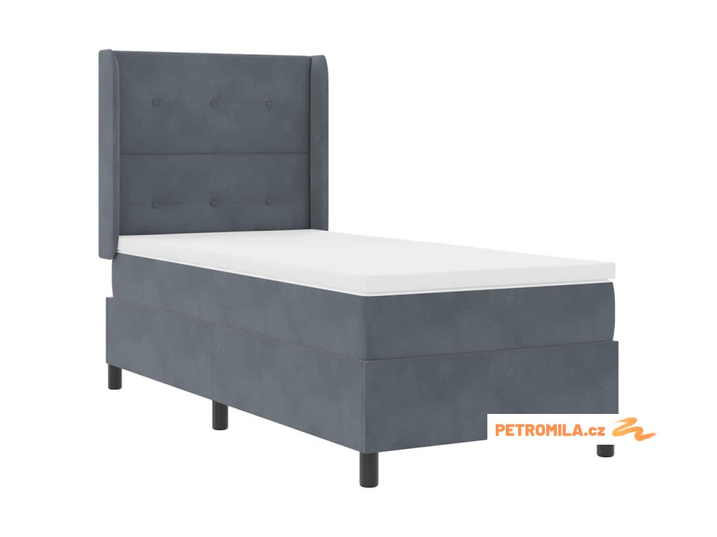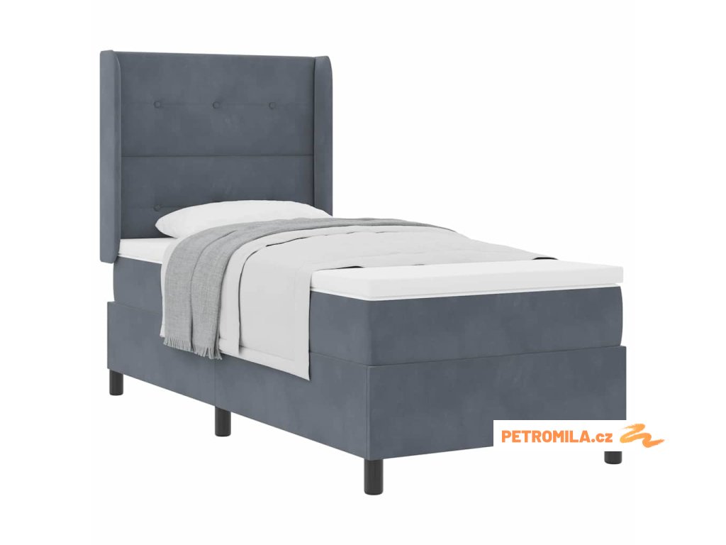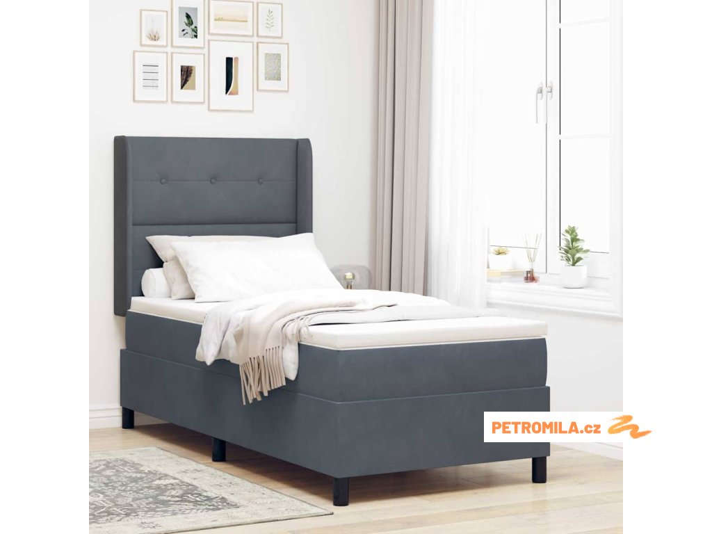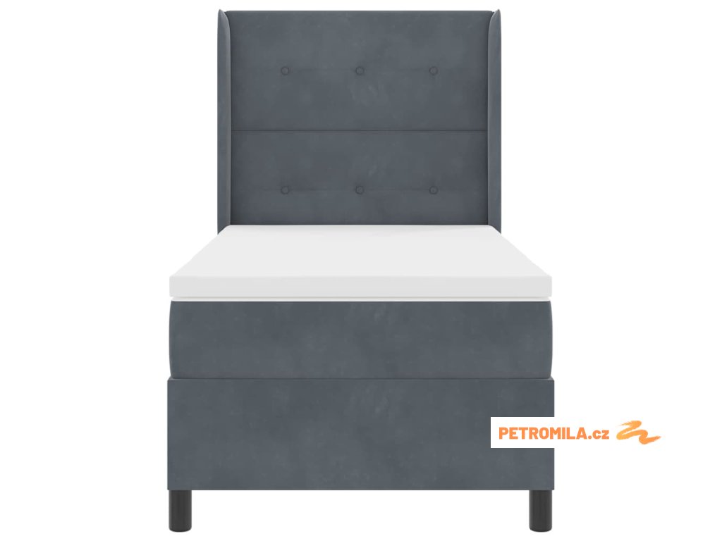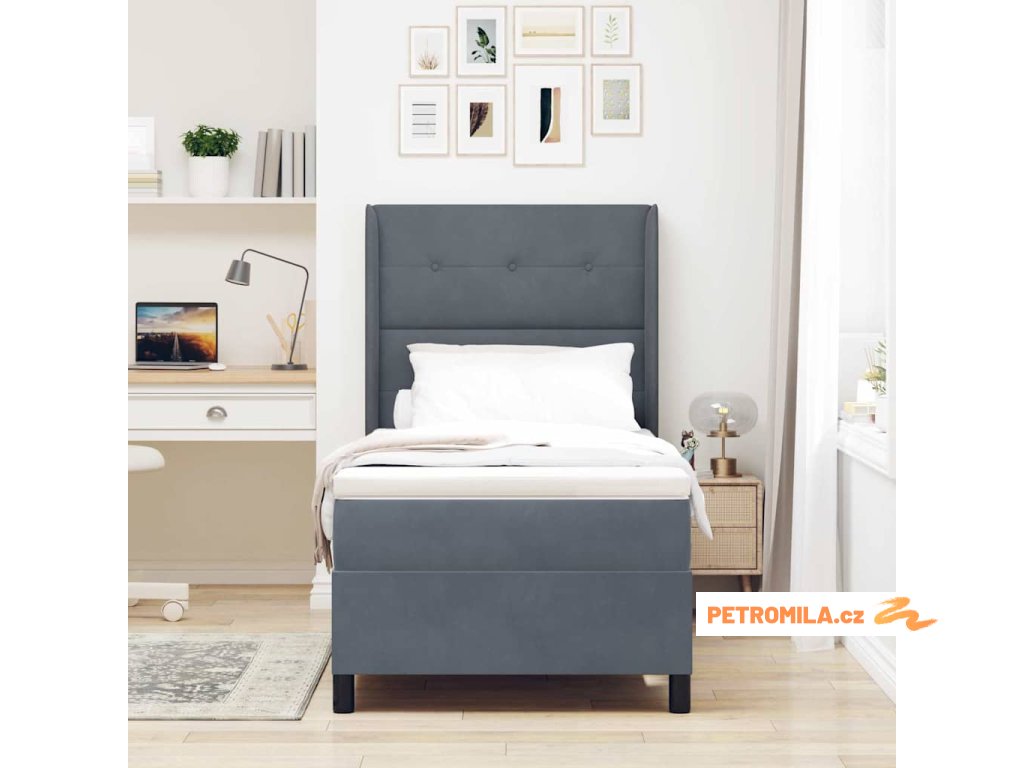Postel s boxspringem s čelo Tmavě šedá 80 x 200 cm samet