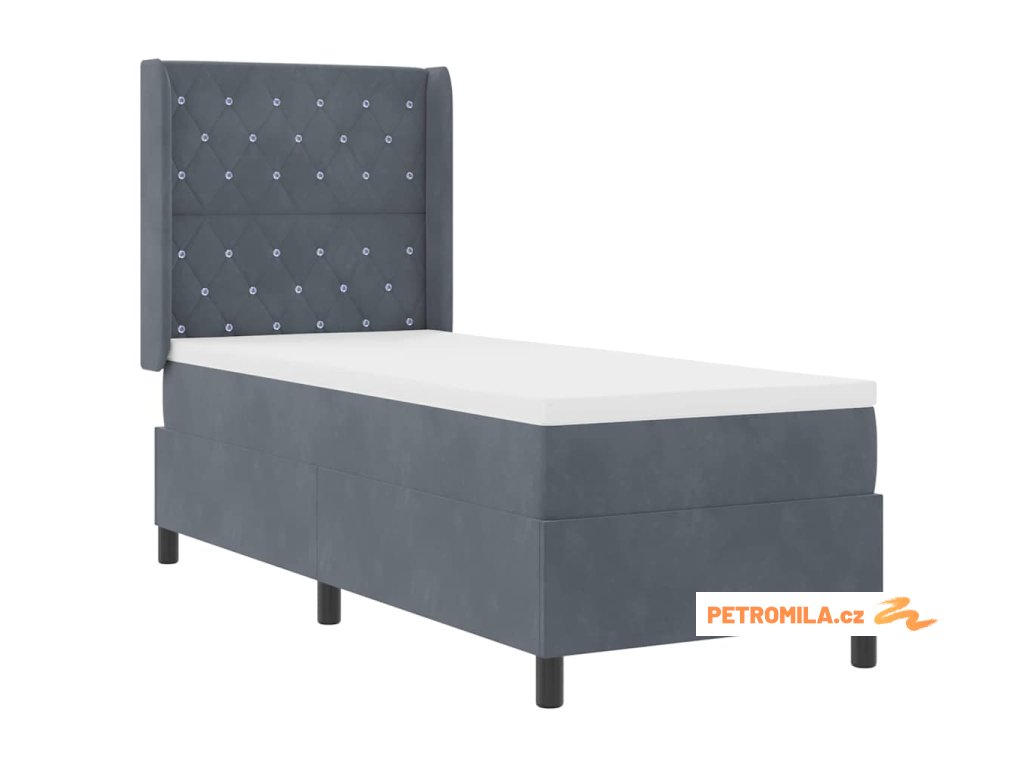 Postel s boxspringem s čelo Tmavě šedá 80 x 200 cm samet