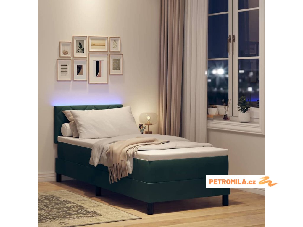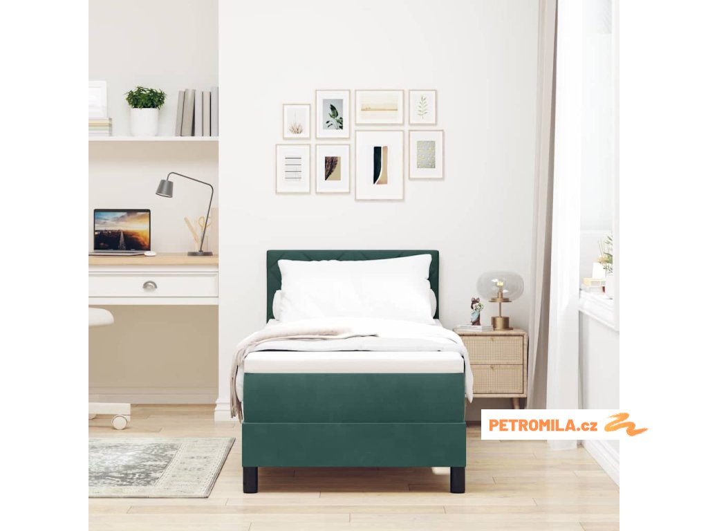 Postel s boxspringem s čelo Tmavě zelená 80 x 200 cm samet