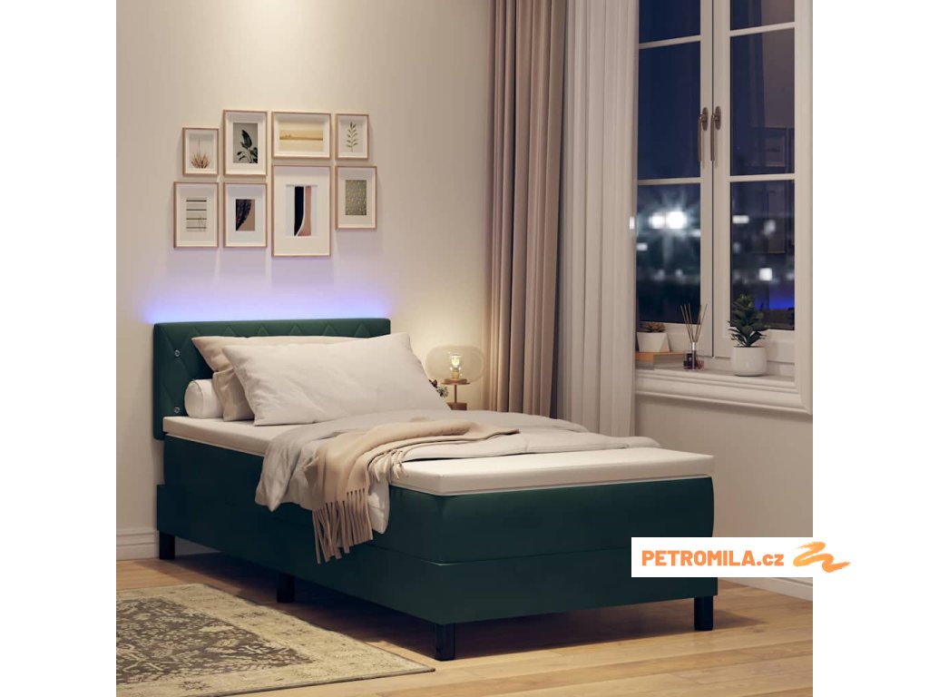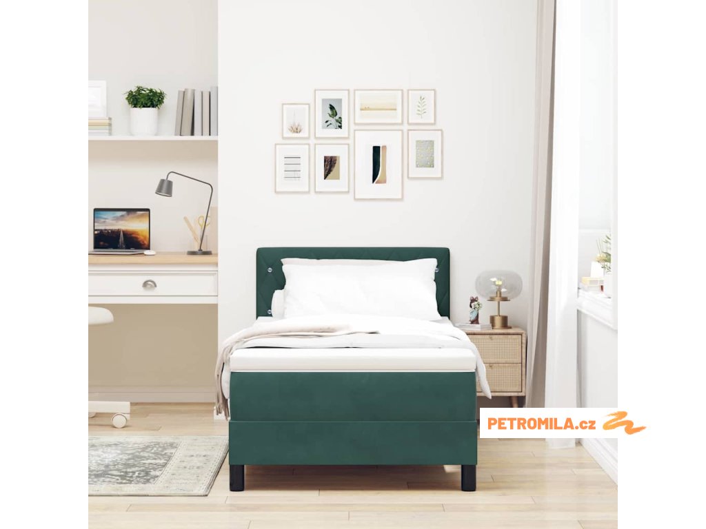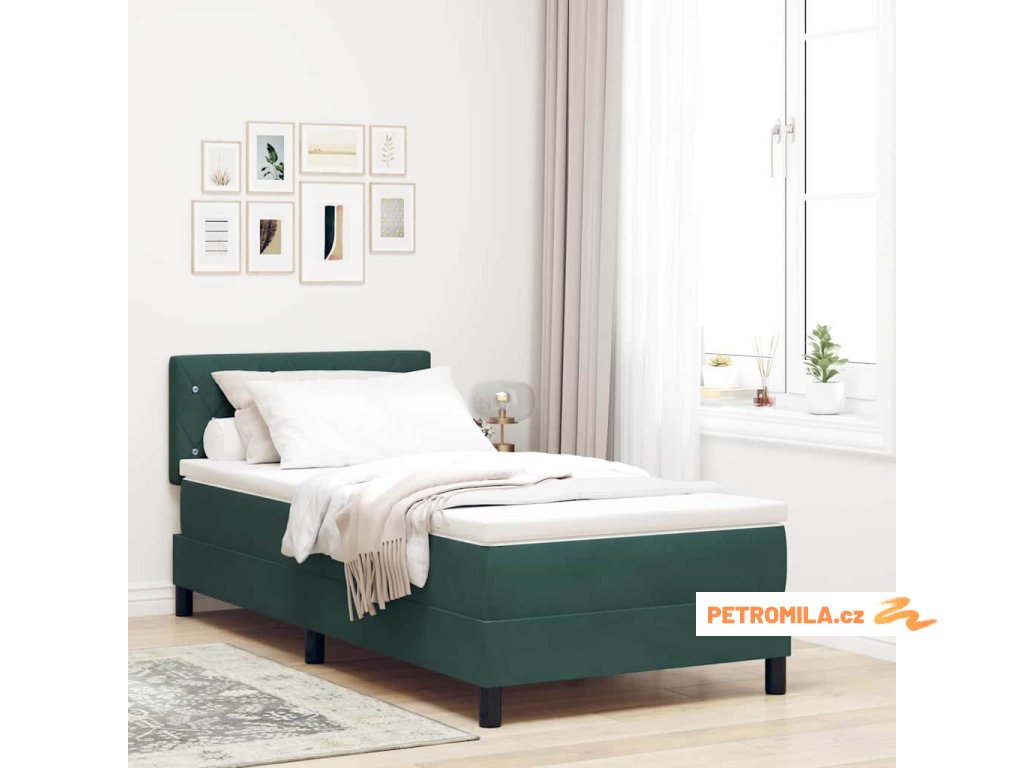 Postel s boxspringem s čelo Tmavě zelená 90 x 200 cm samet