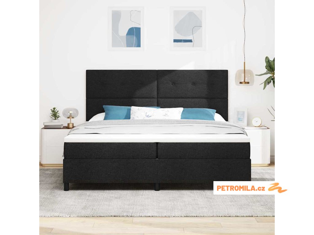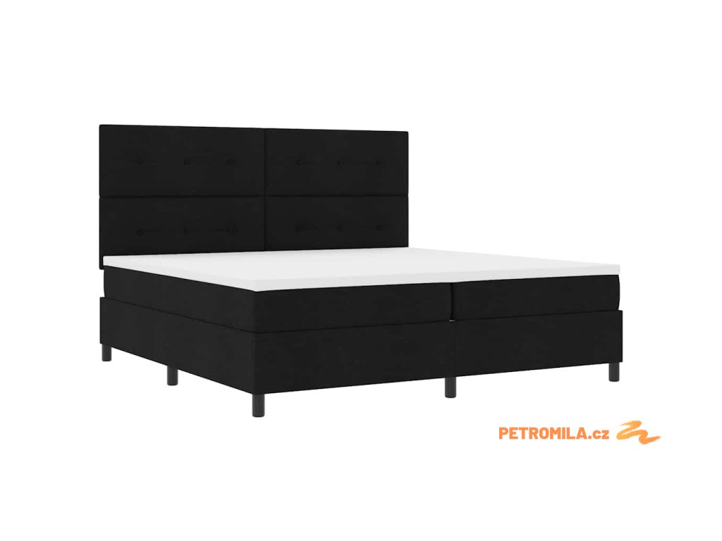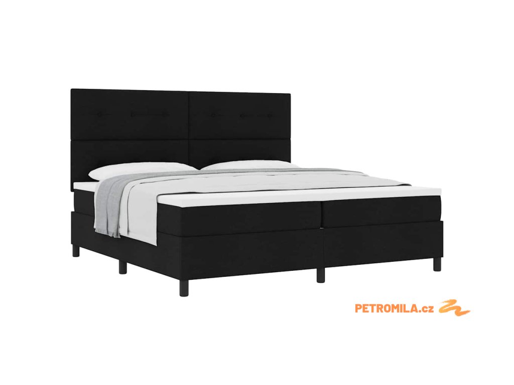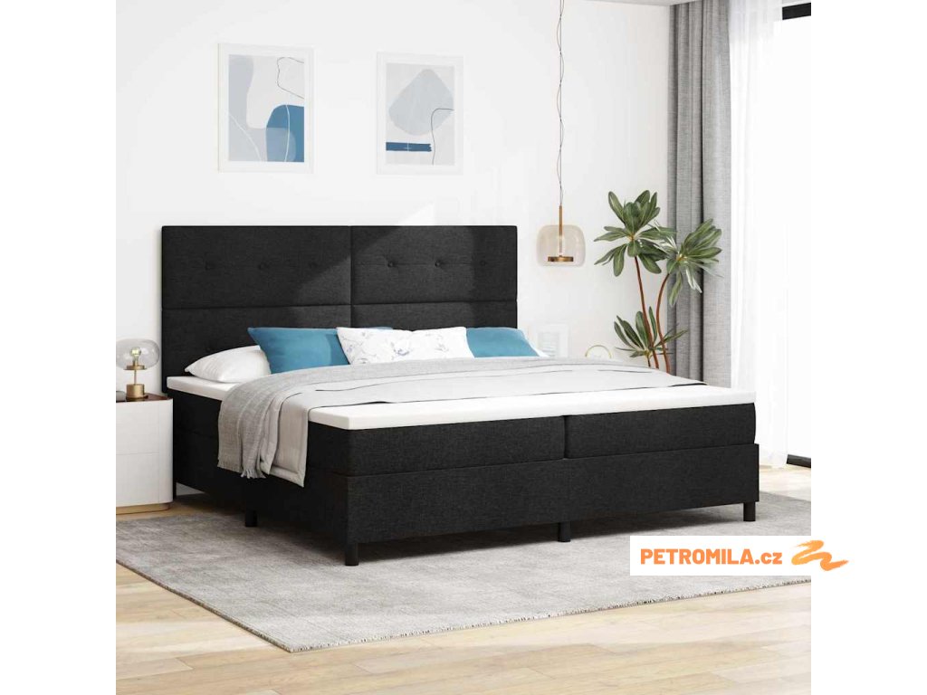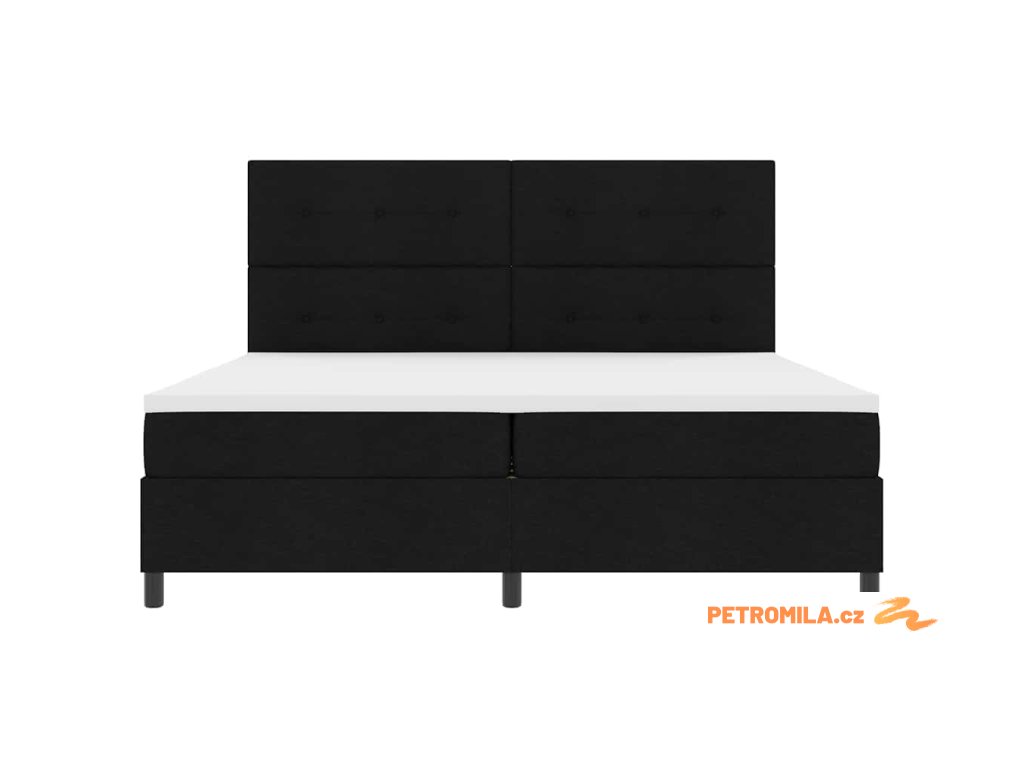 Postel s boxspringem s matrací s čelo Černá 200 x 200 cm textil