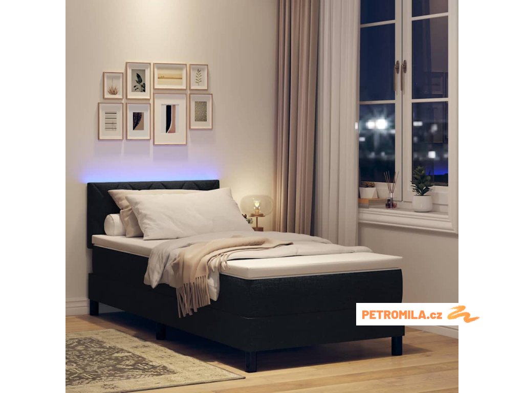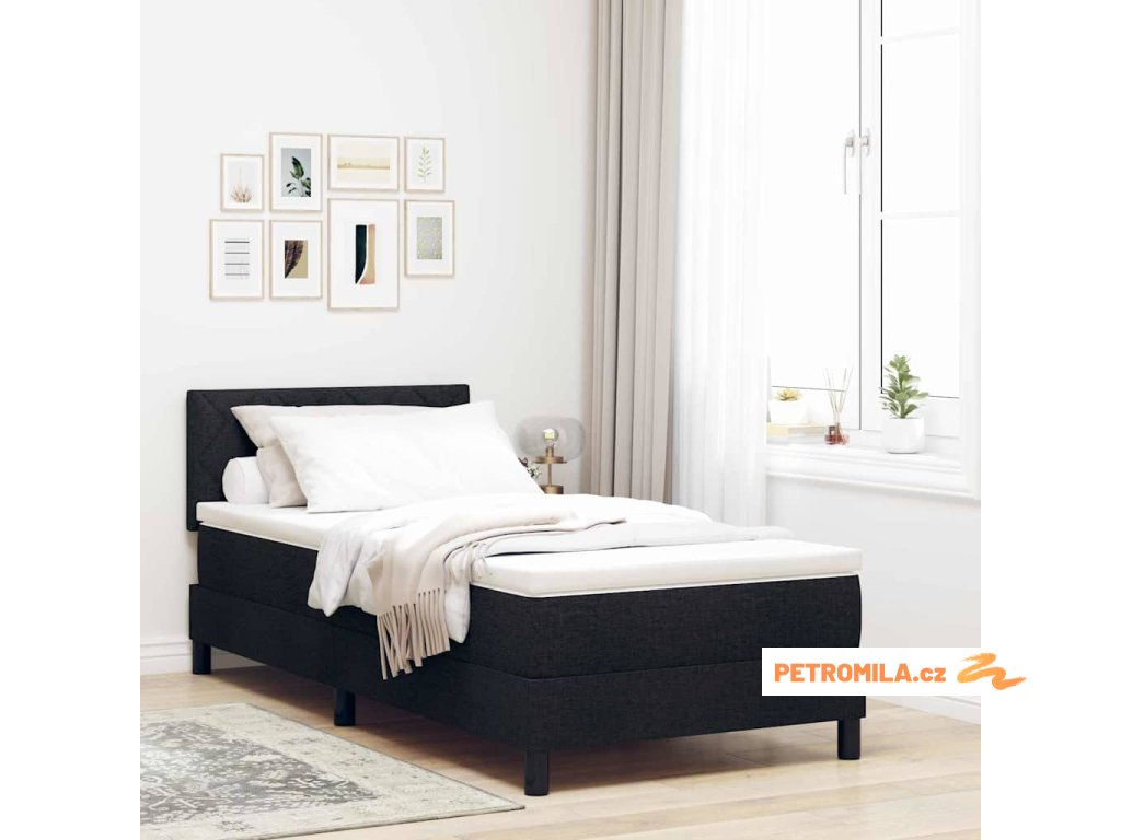 Postel s boxspringem s matrací s čelo Černá 90 x 190 cm textil