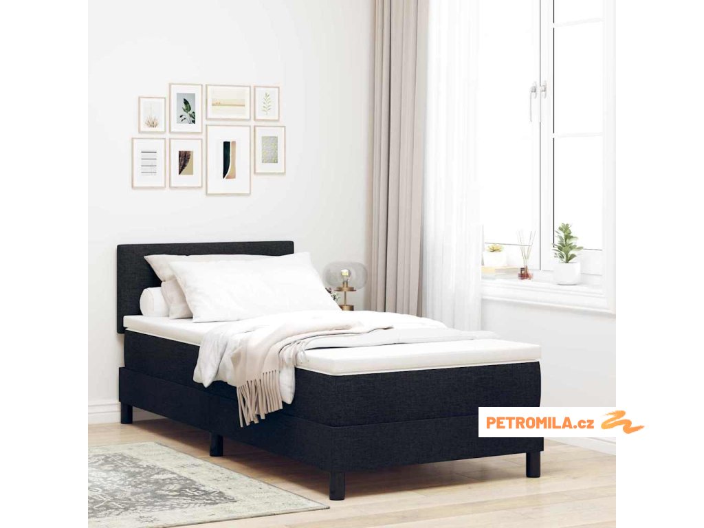Postel s boxspringem s matrací s čelo Černá 90 x 200 cm textil