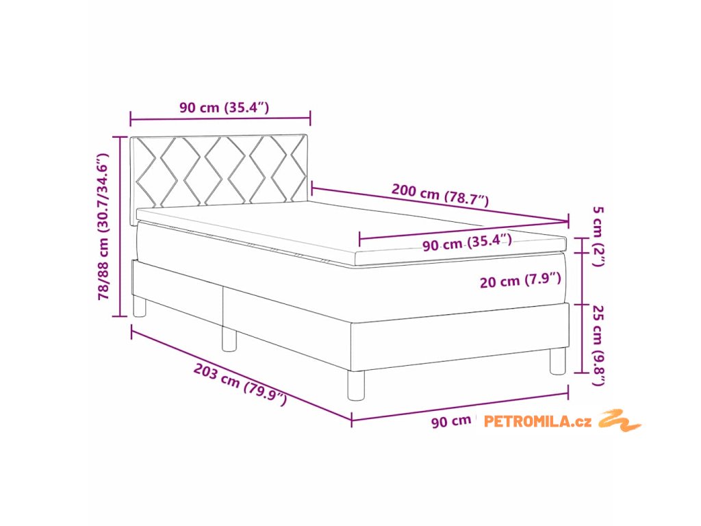 - Velikost matrace: Jednolůžko (90 cm x 200 cm nebo 35" x 79")