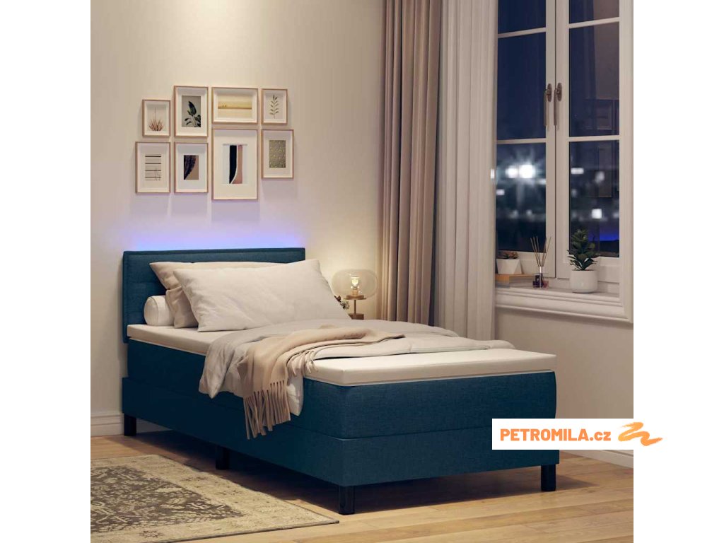 Postel s boxspringem s matrací s čelo Modrá 100 x 200 cm textil