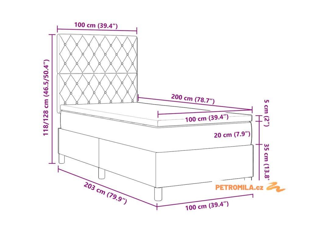 - Velikost matrace: Široké jednolůžko (100 cm x 200 cm nebo 39" x 79")