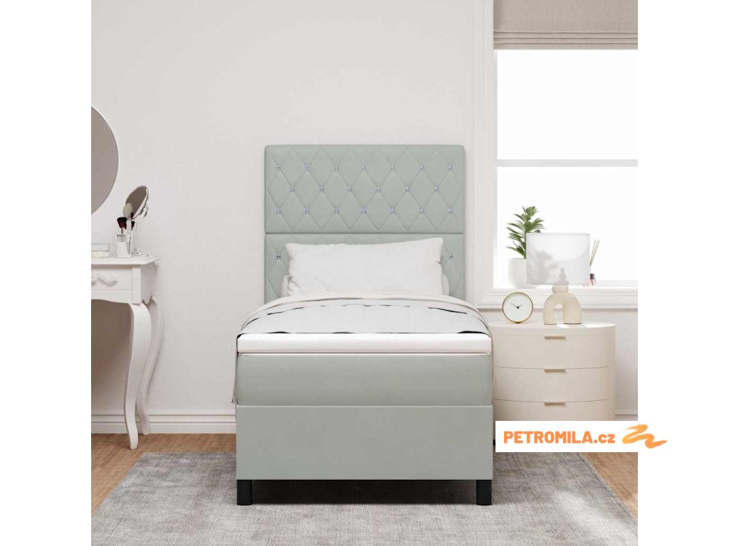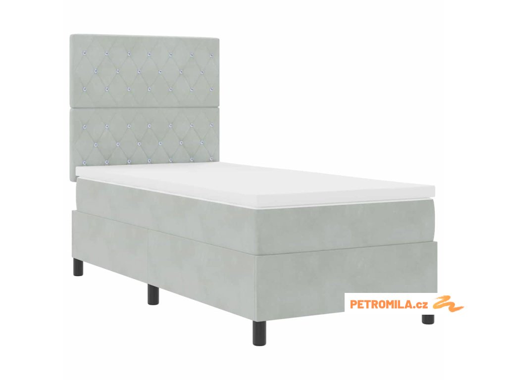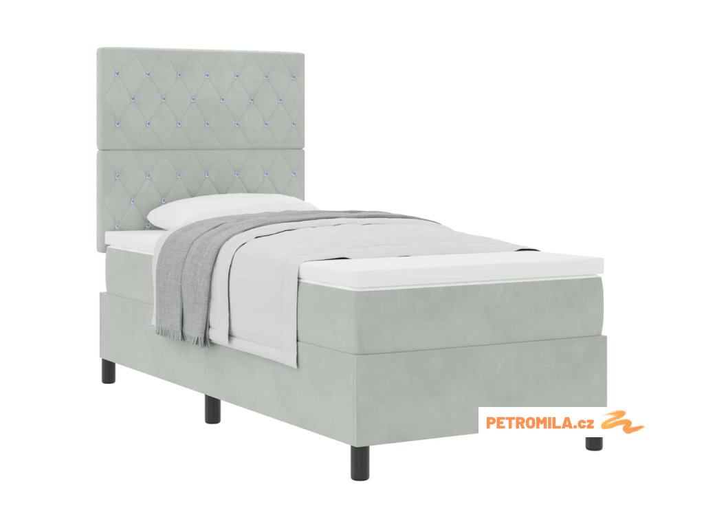 Postel s boxspringem s matrací Světle šedá 100 x 200 cm samet