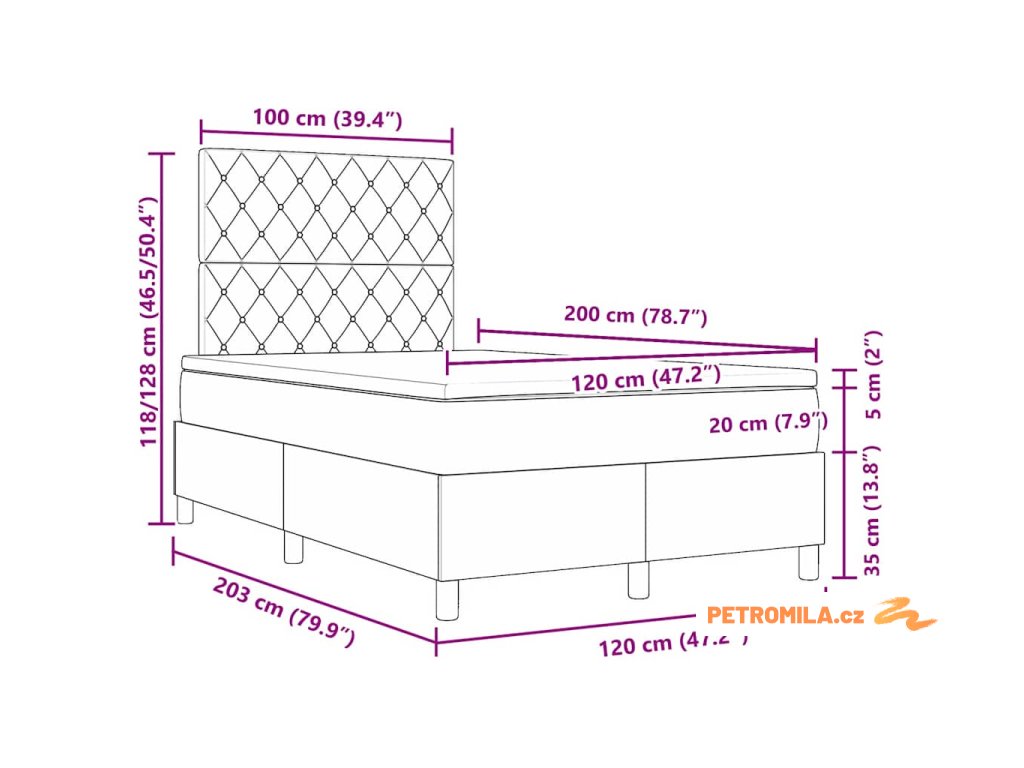 - Velikost matrace: Malá dvojpostel (120 cm x 200 cm nebo 47" x 79")
