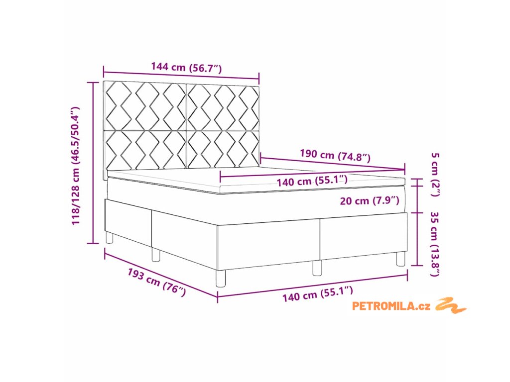 • Velikost matrace: Krátká dvojpostel (140 cm x 190 cm nebo 55" x 75")