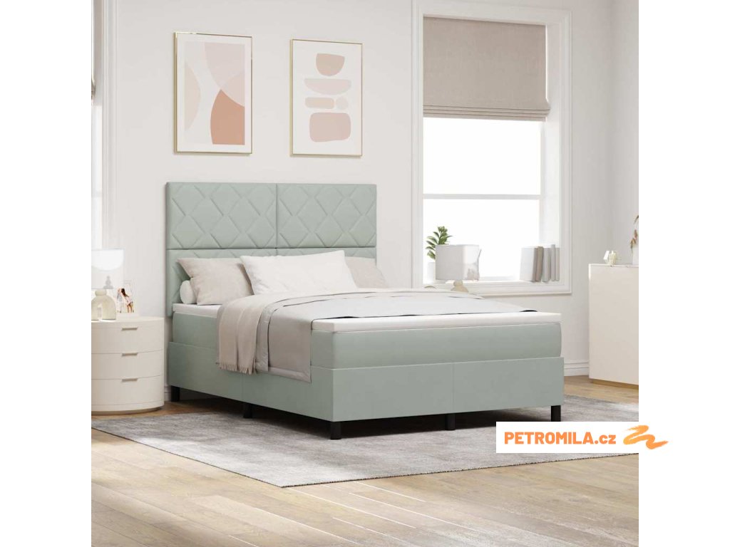Postel s boxspringem s matrací Světle šedá 140 x 190 cm samet