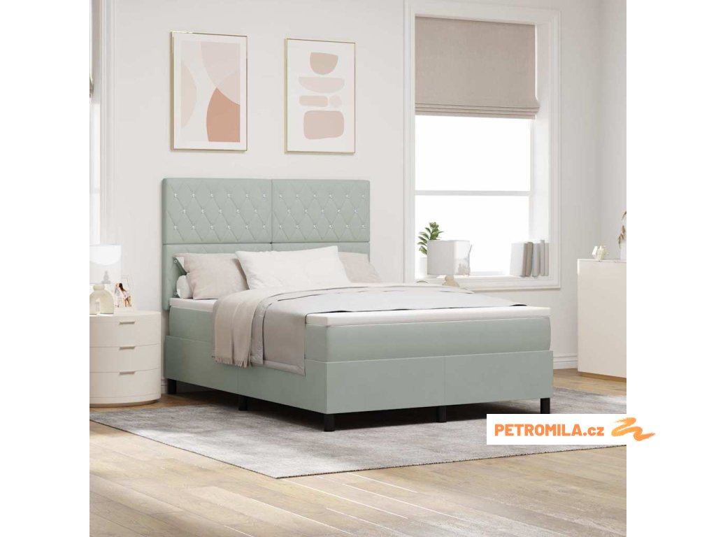 Postel s boxspringem s matrací Světle šedá 140 x 200 cm samet