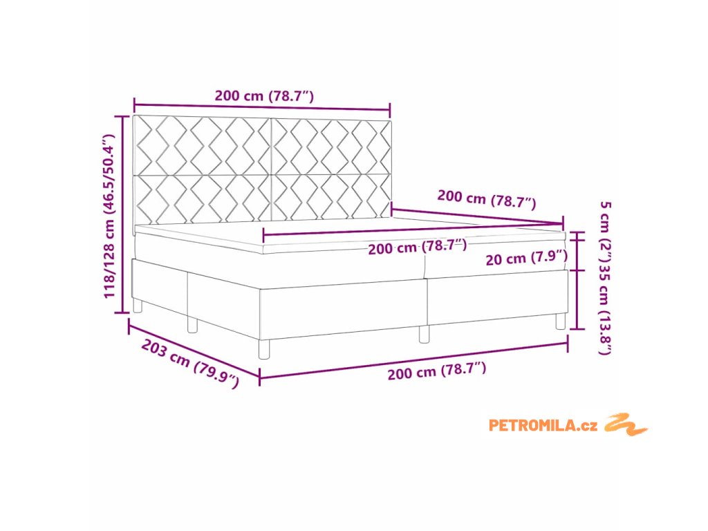 - Velikost matrace: Císařská postel (200 cm x 200 cm nebo 79" x 79")