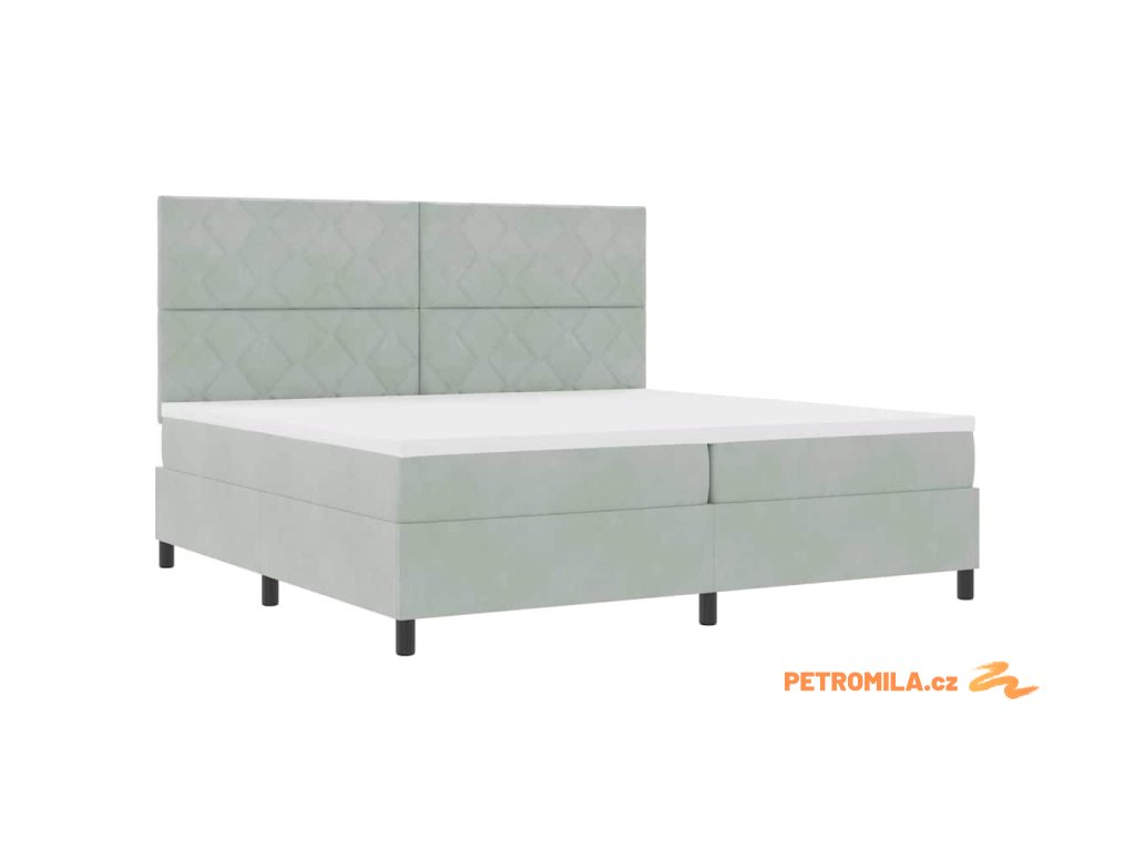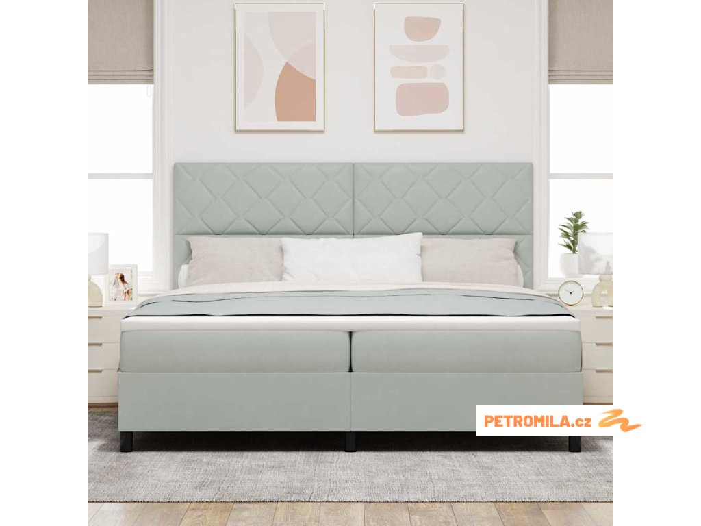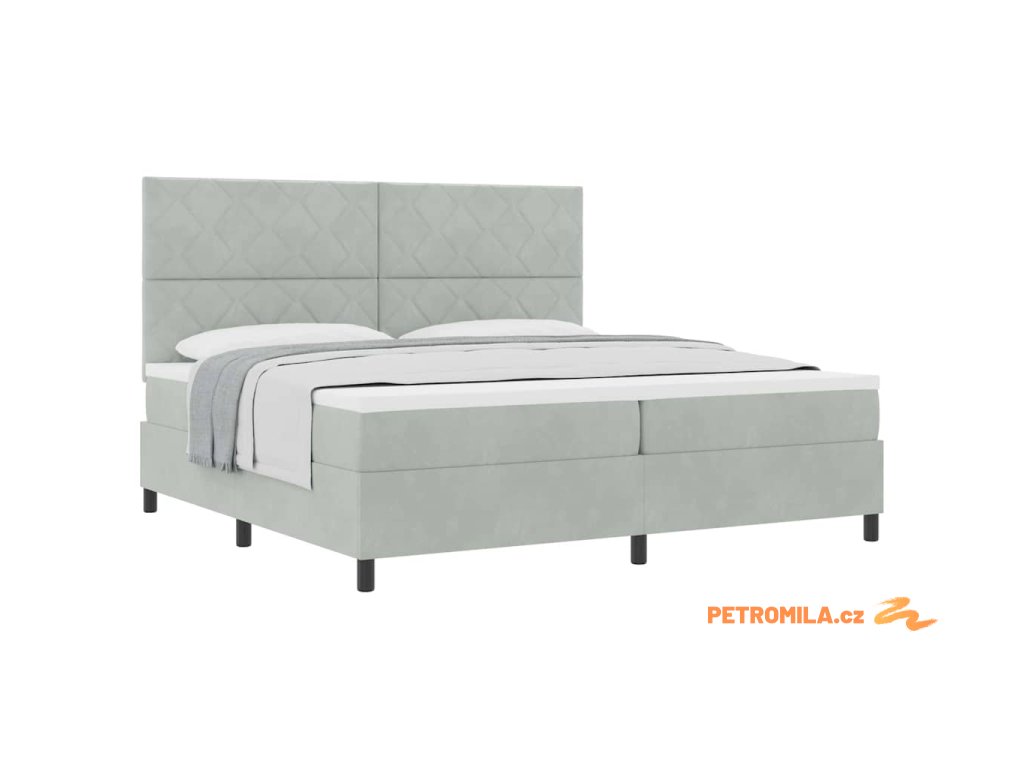 Postel s boxspringem s matrací Světle šedá 200 x 200 cm samet