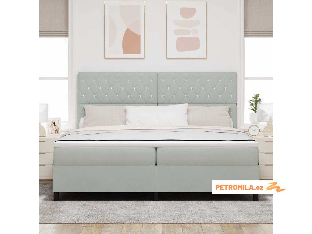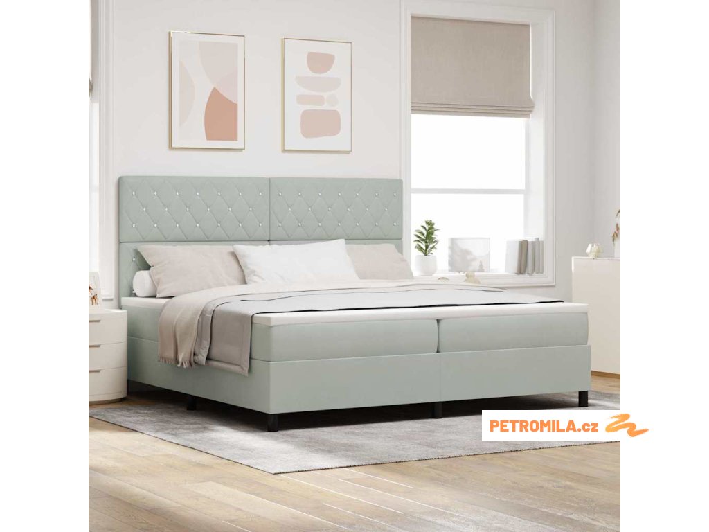 Postel s boxspringem s matrací Světle šedá 200 x 200 cm samet