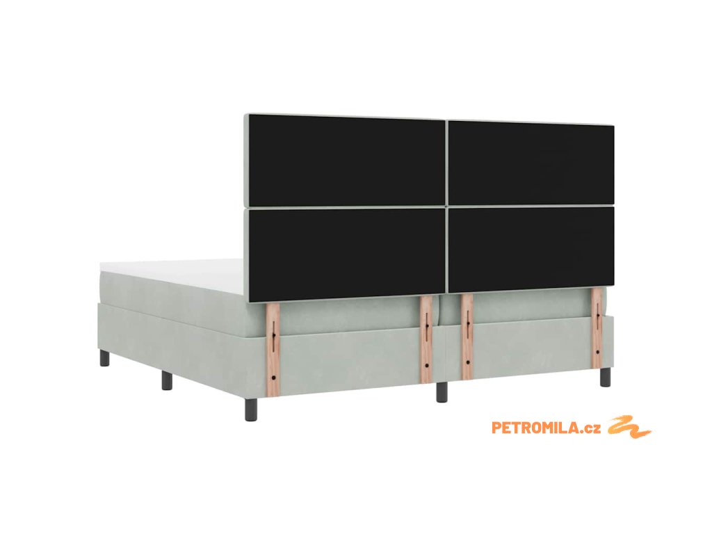 - Materiály: Postel s pružinami je z příjemného sametu a kvalitního borového dřeva. Působí skvěle na dotek a je dost pevná, aby vydržela. Bohatá látka dodává tvé ložnici eleganci.