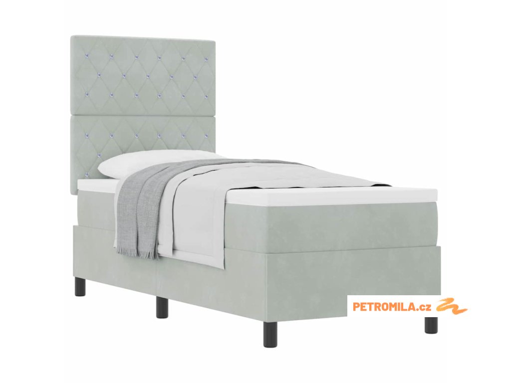 Postel s boxspringem s matrací Světle šedá 80 x 200 cm samet
