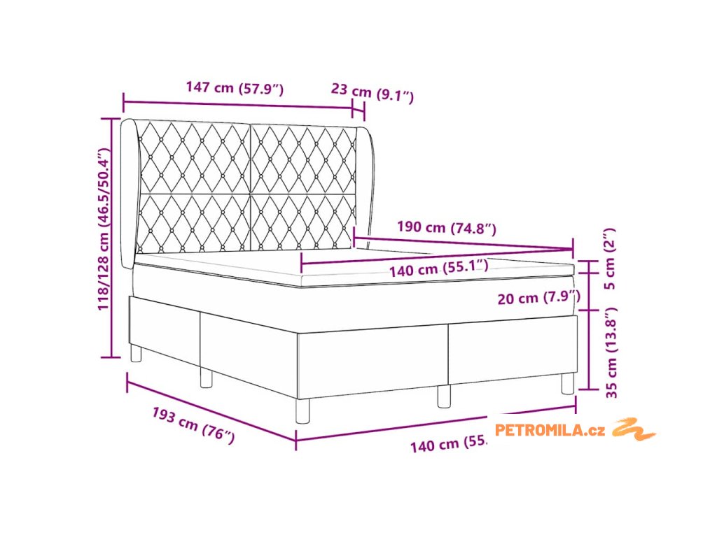 - Velikost matrace: Krátká dvojpostel (140 cm x 190 cm nebo 55" x 75")